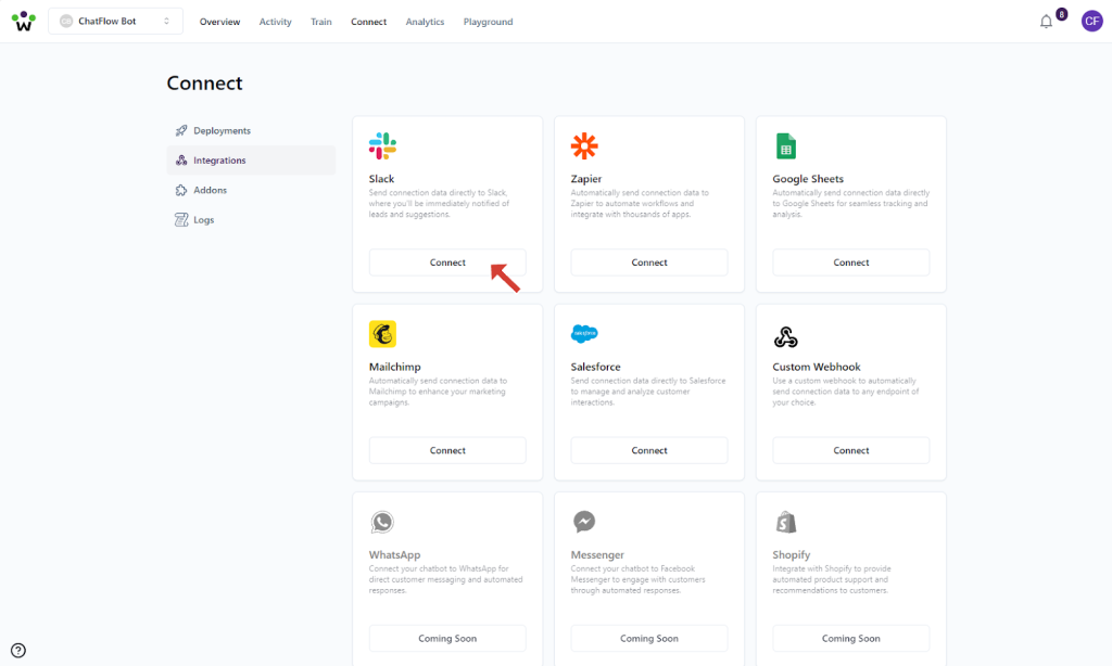 That’s it! Your ChatFlow chatbot is now integrated with Slack and will automatically send connection data to your specified channels.